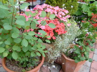 柏葉紫陽花・紅さんごの寄せ植え