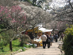 園内の梅ノ木は、樹齢100年を超える古木を含めて700本以上。12月初めから咲き始め、 1月中旬が身頃だが、3月中旬まで咲いている。