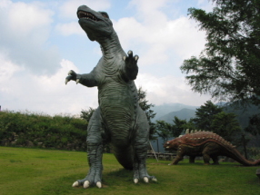 恐竜館の入り口には、約7,000年前の白亜紀後期、最も強い肉食恐竜のチランノサウルスの若い模型が大きな口を