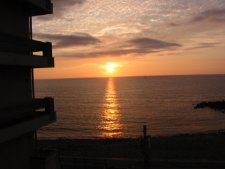 バリアフリー対応室からの日本海の夕日