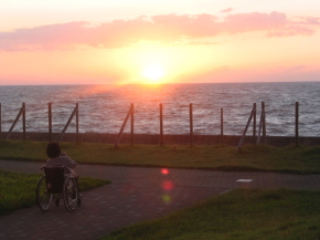 もう太陽は真っ赤に染まって水平線に吸い込まれるように沈んで行く。