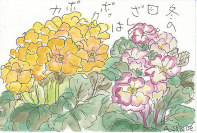 最近、年賀状書きでちょっと絵手紙がかけなくて、やっと出来上がり
