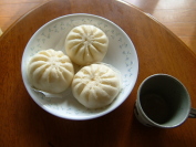 湯気の立った肉まんをフウフウいいながらかぶりつく・・・