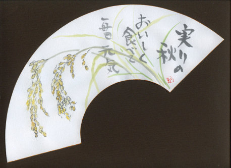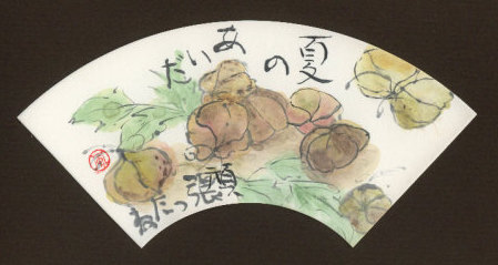 扇面に描いた絵手紙 封筒に入れて送ります。
