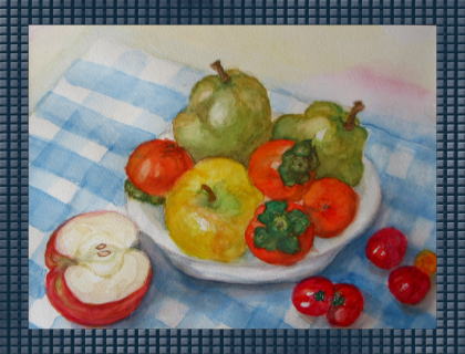 果物を描く この絵が「通信講座の雑誌」 誌上ギァラリーに掲載されました。 嬉しくて、とても励みになりました。