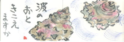 佐渡から持ってきたサザエの貝殻。耳を当てると波の音が聞こえてきます。