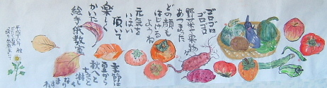 夏は元気な野菜、秋は美味しい果物がいっぱい集まりました。