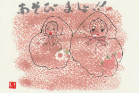 しょうじ紙に描いた絵手紙、ちょっと染みて