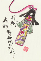 手作りの紙人形やお雛様。体の具合が悪いといいながらもお人形を作ったり絵手紙を描いたり
