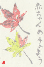 きれいに色づいた落ち葉を拾って、うつして見ました。ちょっと薄めの墨を木の葉に塗って「ペタッ」と押すだけ