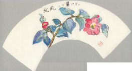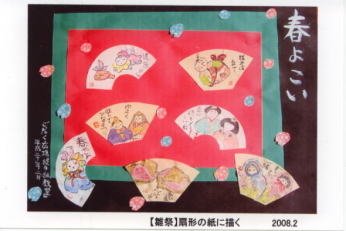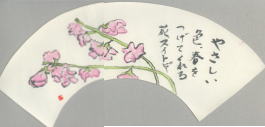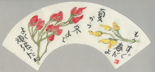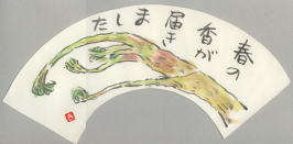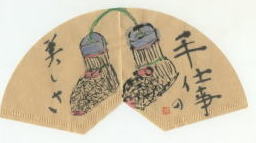 半紙を扇型に切り抜いて扇型を作って描いた作品