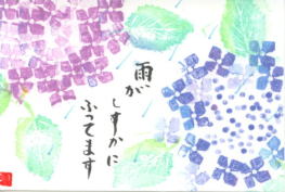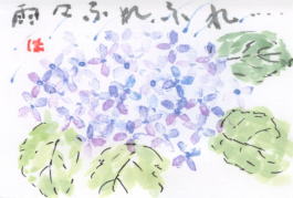 雨の季節を楽しみながら描いてくれた絵手紙ですね…