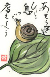 田んぼからは元気なかえるの合唱が聞こえてきます。カタツムリは葉っぱの上を