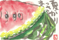 梅雨が明けて、暑い毎日が続きます。暑い暑いといいながらも絵手紙教室は
