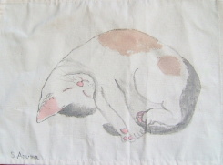 布に描いてみました。墨で描くと滲んでしまうので、ペンテルの『ソメール絵の具』と