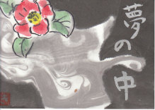 墨の渦ができた状態を見て、画仙紙の葉書に写します。
