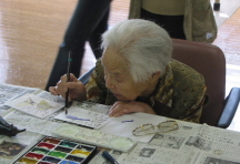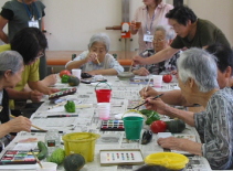 皆さんと一緒に絵手紙を楽しみました。