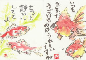水の中を動き回る金魚やカメなどを描く。