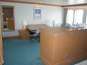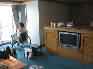 テレビの左側が冷蔵庫で、出航前にコンビニ