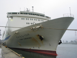 フェリー あざれあ 苫小牧東港を7月14日(水) 19時50分に出航し、新潟港 へ翌日の7月15日(木)15時 30分に着く。 途中で秋田港に8時から9時 までの1時間の停泊がある。