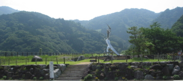 この時小谷村は孤立し大きな被害をうけた。この恐竜のモニュメントは