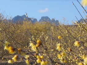 12月中旬から3月初旬まで咲いています。面積2.5ha、1000株10000本の蝋梅が咲いています。