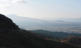 阿蘇山麓のかんぽの宿から別府へ向かう「やまなみハイウェイ」のドライブコースをとる。