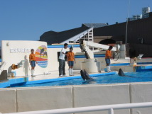 @オキちゃん劇場て゜はイルカショー Aいるかスタジオではイルカの能力や不思議さや素晴らしさを知ることができる