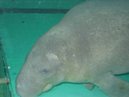 観察できる Dマナティー館は人魚のモデルの大きなおとなしいマナティーをじっくり見学できる。