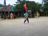国王・王妃・三司官。旗頭を先頭にパレードがはじまる。