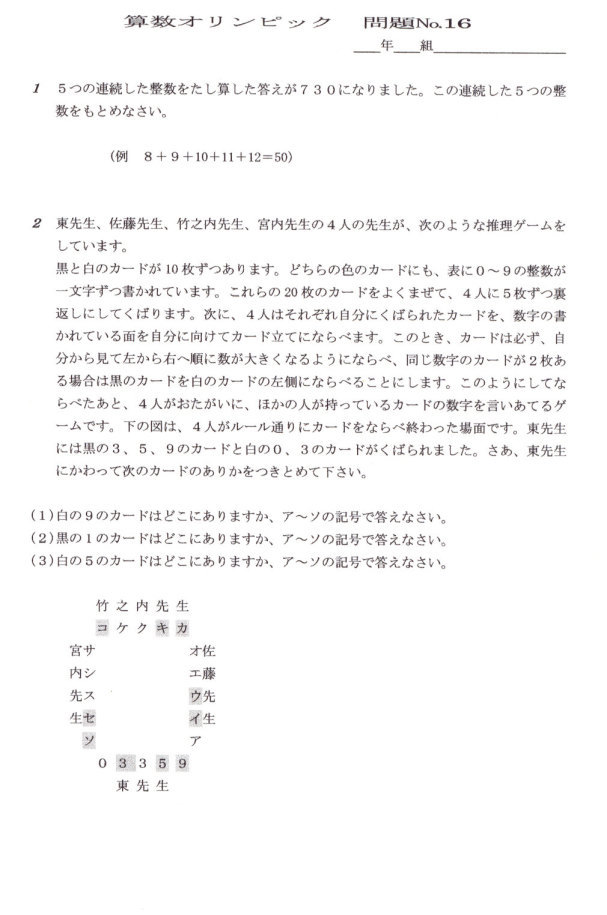 おもしろ算数 チャレンジ問題 16