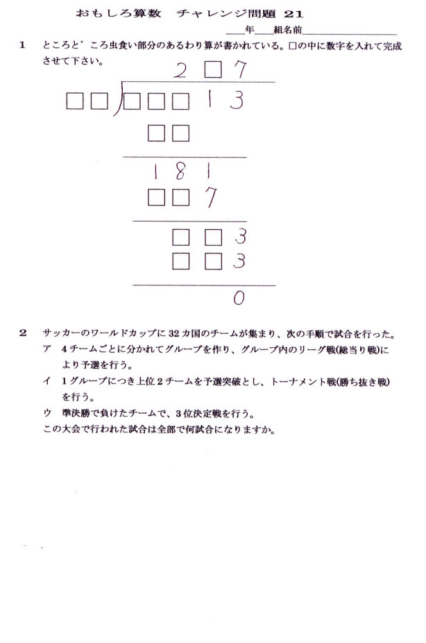 おもしろ算数 チャレンジ 問題 21