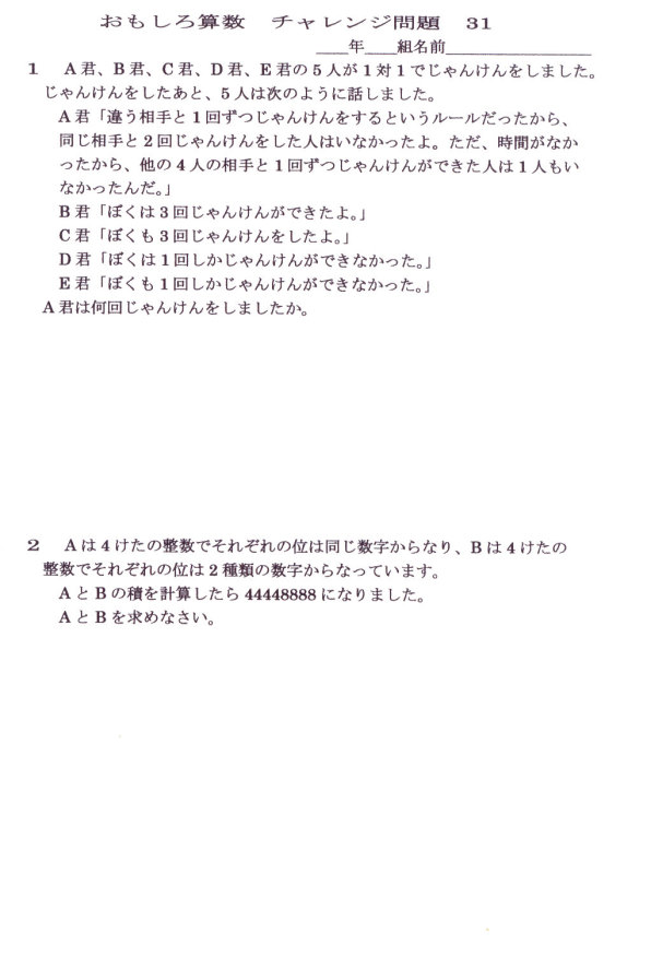 おもしろ算数 チャレンジ問題 31