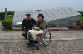 残念ながら何も見えない。鳥羽一郎と山川豊兄弟の歌碑の前で一枚