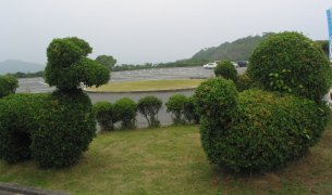 トピアリーが沢山並んでいる。家・椅子・トトロ・プードルなどとても楽しい。