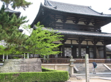 車椅子のため南大門の横から入り、五重塔・金堂を眺め回廊を通り抜け{【大講堂】へ、有名な薬師三尊像