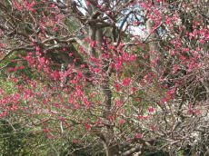 園内の梅ノ木は、樹齢100年を超える古木を含めて700本以上。12月初めから咲き始め、 1月中旬が身頃だが、3月中旬まで咲いている。