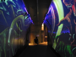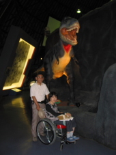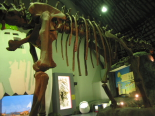 恐竜館の入り口には、約7,000年前の白亜紀後期、最も強い肉食恐竜のチランノサウルスの若い模型が大きな口を