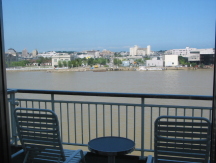 新潟港を出航する頃はすっかり晴れていた。海は泥色で船はたくさんの