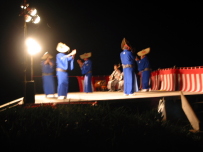 夕食後、ホテルのバスで海岸の「春日崎特設ステージ」に出かけ、鬼太鼓、相川甚句、相川音頭、佐渡おけさを見学しました。