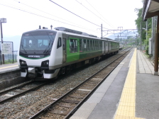 ちょうど私達が駅舎に寄った時2両編成の
