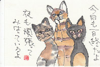 その上筆を洗うコップの水を猫がピチャビチャと飲みに来る