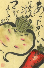 秋のさわやかな風から北風へと 真っ赤に染まった木々の葉も風に飛ばされて 静かな季節に・・・ そんな季節に届いた絵手紙にはより心が暖かくなる 『ありがとう』・・・