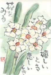暖かい日、寒い日、が交互にやってくる・・・ そして本当の春がやってくる。 いち早く咲く水仙の花。春の日ざしを待ちわびていたように あちこちで群がって咲いている・・・ 「これ絵手紙にかいて」と水仙の花束を頂きました。 よく見るととても可愛くてきれいで、いろいろな種類がある ものですね。 次々咲く花にうっとりしているうちにもう辺りは新緑の季節・・・・