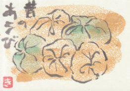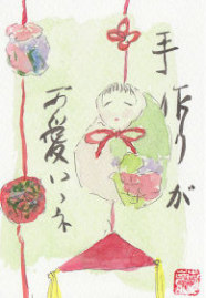 しょうじ紙に描いた絵手紙、ちょっと染みて