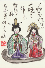 手作りの紙人形やお雛様。体の具合が悪いといいながらもお人形を作ったり絵手紙を描いたり