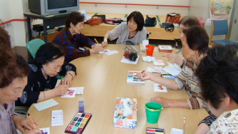 『一緒に絵手紙を描いている風景』