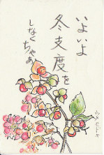 きれいな落ち葉を拾って絵手紙に残してあげよう。 そろそろ皆冬支度・・・