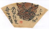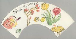 半紙を扇型に切り抜いて扇型を作って描いた作品