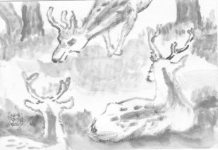 鹿たちにあげようと思うと大きな鹿がいっぱい集まってきて、ぺろりとたいらげる。私の膝の上のバッグの中まで顔を入れてくる。